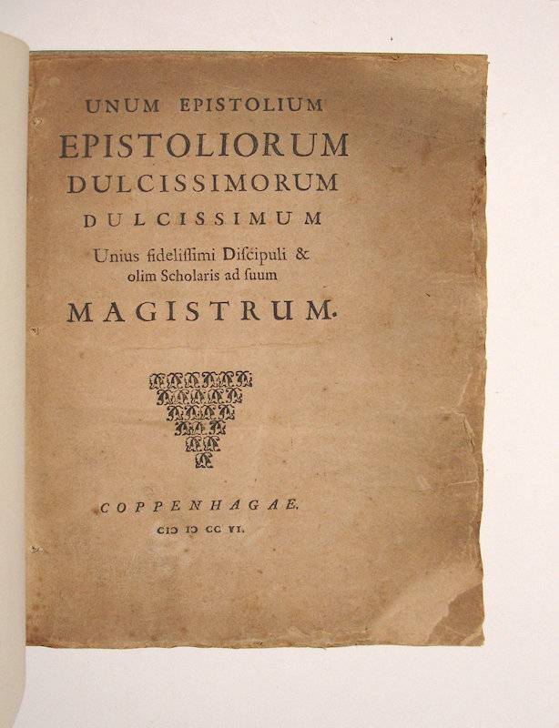 4to. (II),70 p. Modern boards. 22 cm ‘Written cum maxima fractura capitis & labore’ (Ref: STCN ppn 183625013; Knuttel 15549) (Condition: Paper browning. Edges of the title and second leaf chipped) (Note: The Roman author, orator and politician Cicero enjoyed his greatest glory during the Renaissance, ‘when he became not only a historical figure and a writer but also the object of the literary cult known as Ciceronianism’. (The Classical Tradition, Cambr. Mass., 2010, p. 195) Petrach established Cicero as a uniquely powerful stylistic source and intellectual resource. ‘In the later 15th century Humanists like Angelo Poliziano and Filippo Beroaldo began to widen the range of Latinity: they commented on and sometimes imitated Quintilian, Statius, Apuleius, and others.’ (Op. cit., p. 196) Thanks to humanistically inclined popes Ciceronianism, the endeavour to imitate, or even ape the pure Latinity of Cicero, won the debate. In 1528 Desiderius Erasmus published his ‘Ciceronianus’, a treatise that attacked the Ciceronian pedantic Latin written by many scholars during the early 16th century. But, ‘over time a moderate Ciceronianism , generally classical, but not extremist, became the norm, in Protestant ‘Gymnasien’ in North Germany (and the Netherlands), Jesuit schools from Paris to Prague, and English grammar schools alike. Despite the late 16th century vogue for Tacitus, Cicero retained his central position as a school author and a model for good writing of many kinds’. (Op. cit., p. 197) In the late 17th and the 18th centuries Cicero’s works continued to be committed to memory in schools, as an example of good taste. Now, having acquired the principal rules, and a competent knowledge of the language, the student was adviced for his grammatical studies to peruse constantly and carefully the works of Cicero, and authors like Terentius and Caesar, in order to absorb the structure and idiom of pure Latinity. § The Dutch scholar Pieter Burman, or Petrus Burmannus, 1668-1741, appointed in 1696 professor of History and of Latin at Utrecht, was one of the advocates of an elegant Latin style. In 1706 Burmannus published this satyrical letter, supposedly written by one Stephanus Spinaeus, to denounce the horrible dog-Latin of some of his colleagues, for instance the Dutch scholar Melchior Leidecker, 1642-1721, who was professor of Theology since 1678 at the university of Utrecht. Leydecker wrote a kind of barbaric Latin which no one could understand, unless he spoke Dutch. (Chr. Sepp, ‘Het godgeleerd onderwijs in Nederland gedurende de 16e en 17e eeuw’, Leiden 1873, p. 353) In this letter Burmannus sins against every rule of good taste and style, it teems with mistakes, barbarisms, solecisms, and idiomatic constructions in vernacular, but translated into Latin. Poking fun at Leydecker, Burmannus writes, that he wrote the letter ‘cum maxima fractura capitis & labore’. This satyrical letter was published anonymously, and supposedly in Copenhagen. This is of course a mystification. It was printed in the Netherlands, probably Utrecht) (Collation: pi1, A-I4 (minus leaf I4. Leaf I4 was probably used for pi1, the title)) (Photographs on request)